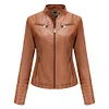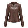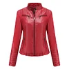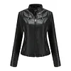 The vintage look of washed motorcycle zipper jacket fashions-up casuals or office wear, while welt pockets and a hidden front zip closure finish this feminine.
