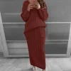 Plus Size Long Sleeve Solid Two Pieces