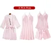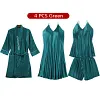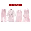 Women's 2/4/5 PCS Silk Sexy Home Pajamas Set